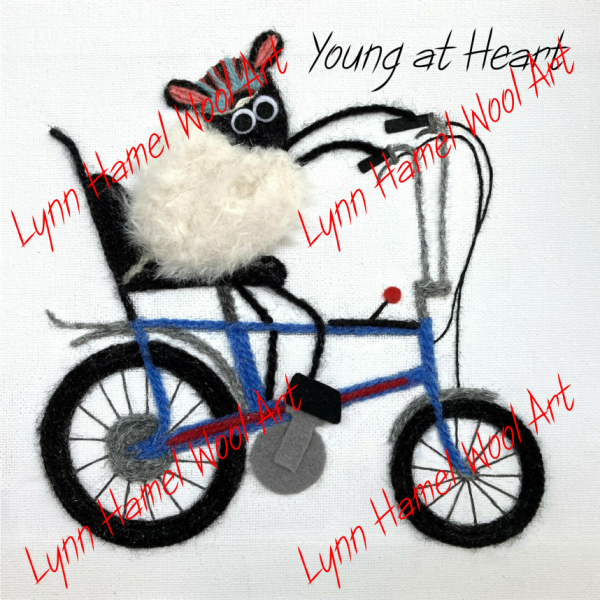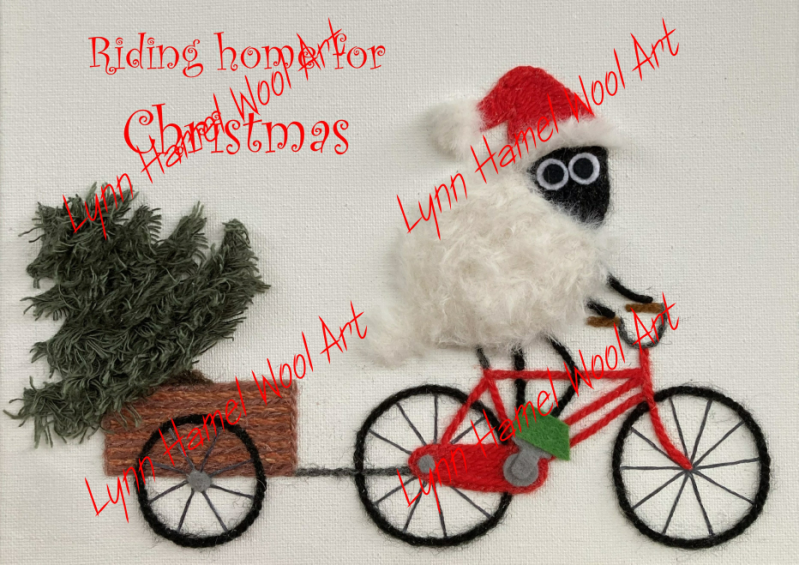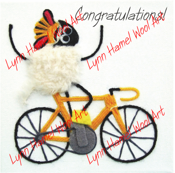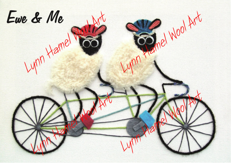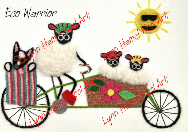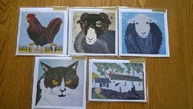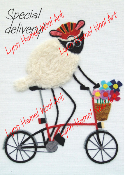 Sheep on Bikes cards; the original canvases are shown on the left, the images on